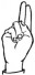 На ћирилици написано ЛАРА КОСНИЋ састоји се из 10 слова [?]. Исписано ћириличном једноручном азбуком за глувонеме: